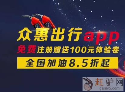 1、众惠出行app加油项目全国通用8.5折起。免费注册赠送100元体验卷即时